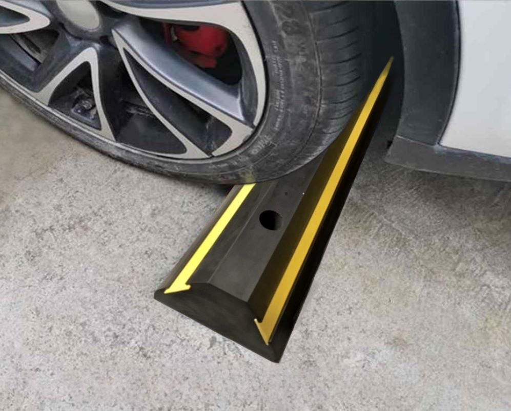 Our vehicle wheel Stopper are available in plain Rubber body as well as along with  yellow reflective stripe options.